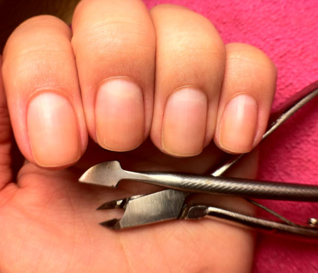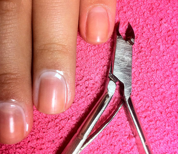 Contenha-se com o alicate e retire apenas a pele solta, não mexendo principalmente na base das cutículas. Nas primeiras semanas elas ficarão grossas, mas resista! Capriche na hidratação!